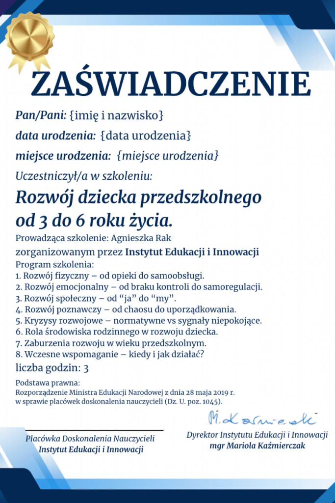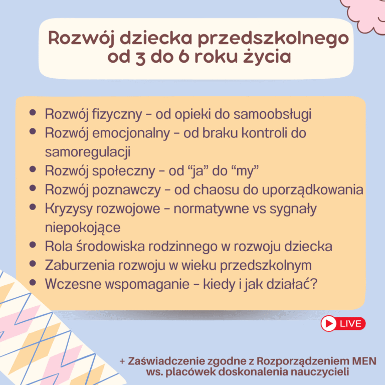 Rozwój dziecka przedszkolnego 3–6 lat – szkolenie praktyczne dla nauczycieli i specjalistów